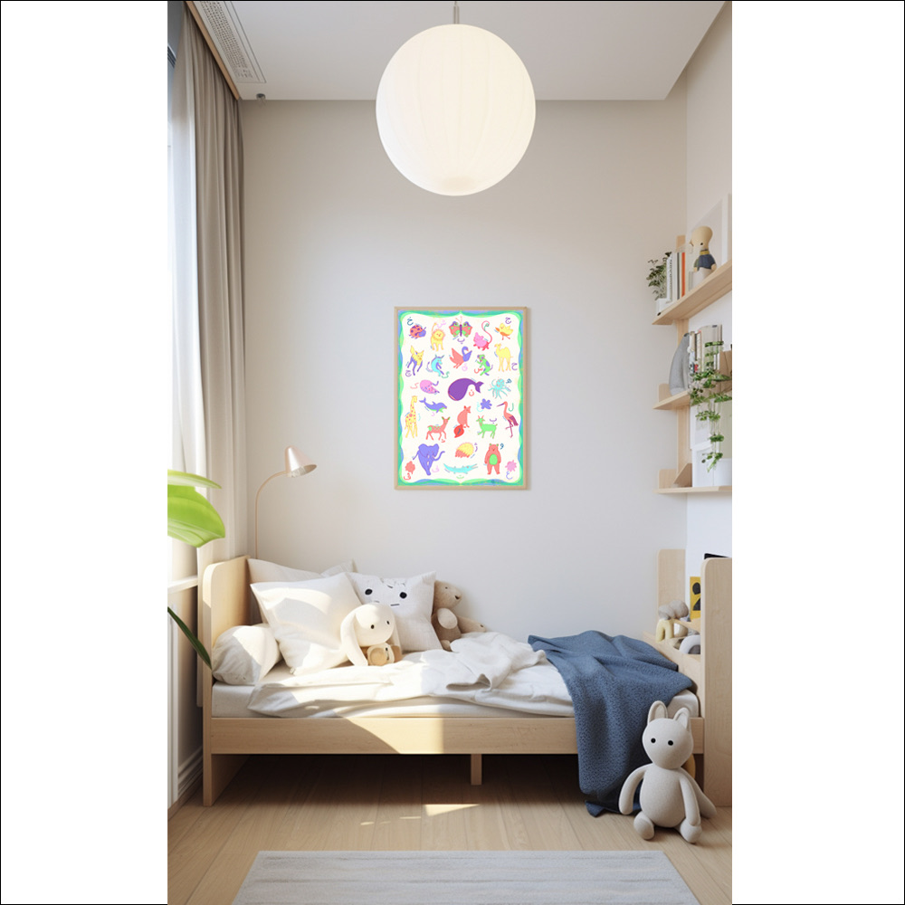 En personlig och iögonfallande affisch som lyfter barnrummet – perfekt som present till det djurälskande barnet.