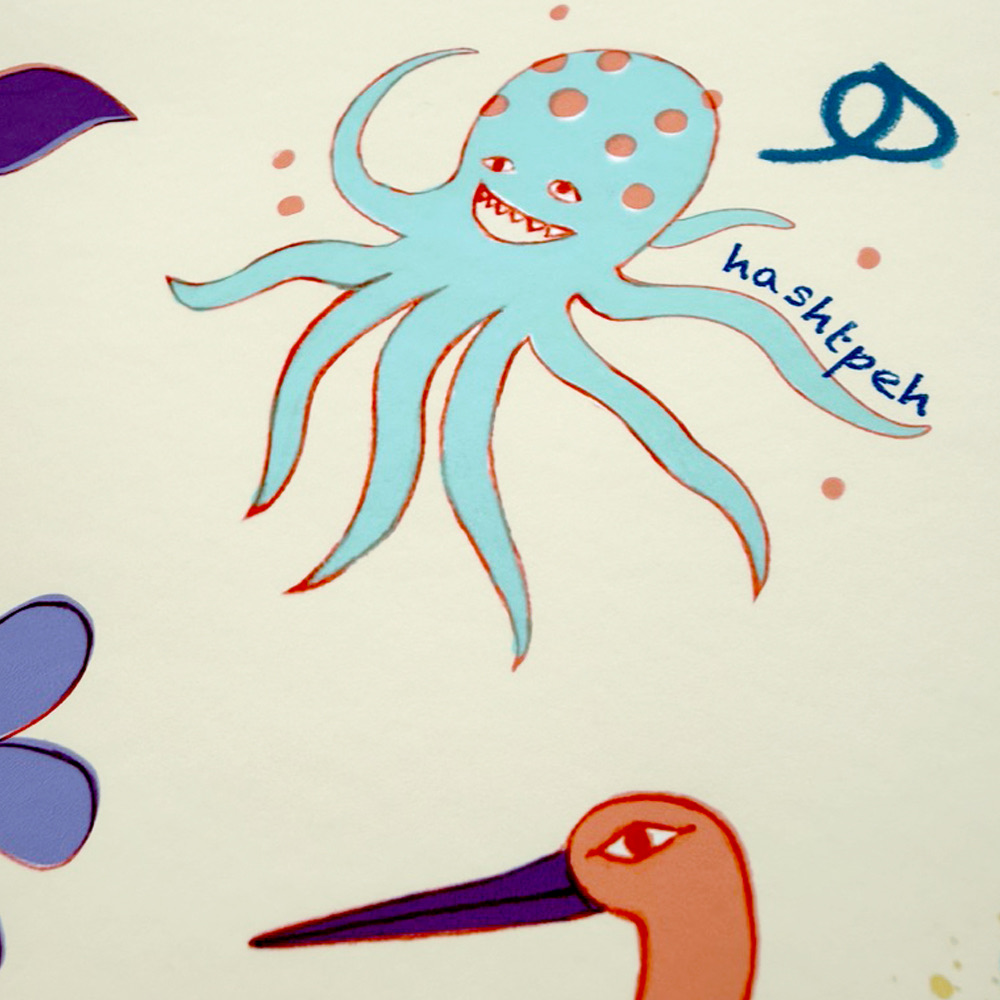 En lekfull och färgstark alfabetaffisch med handritade djur, illustrerad av mig. Varje bokstav är skapad med unika illustrationer i klara, glada och uttrycksfulla färger som väcker nyfikenhet och gör lärandet roligt.