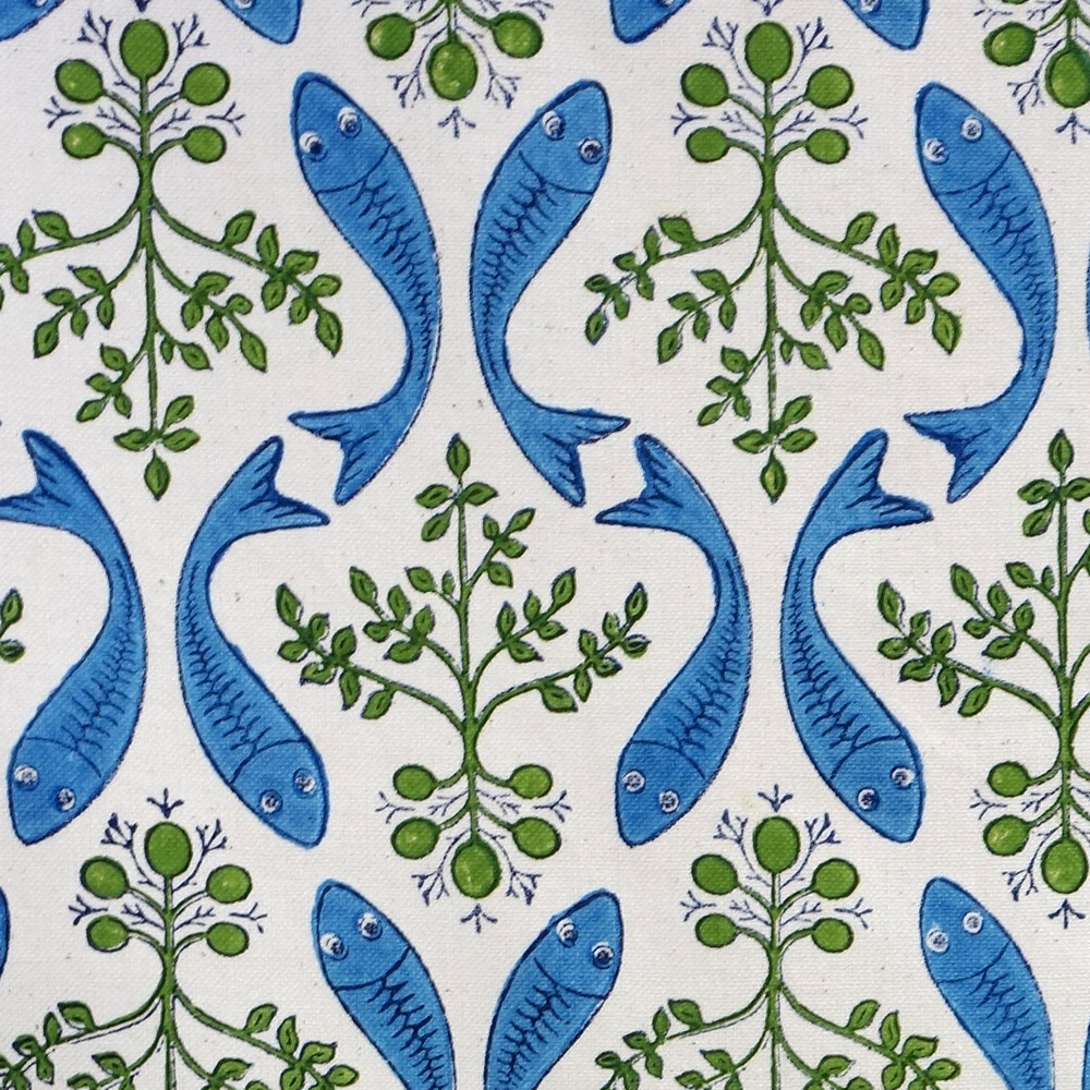 Sill & Potatis är tryckt med träblock av hantverkare i Esfahan i Iran. Blocken är utsnidade ur päronträ. Trycken kräver stor hantverksskicklighet och processen är lång. För varje duk har tryckaren slagit upp till 200 slag med blocken på tyget.
